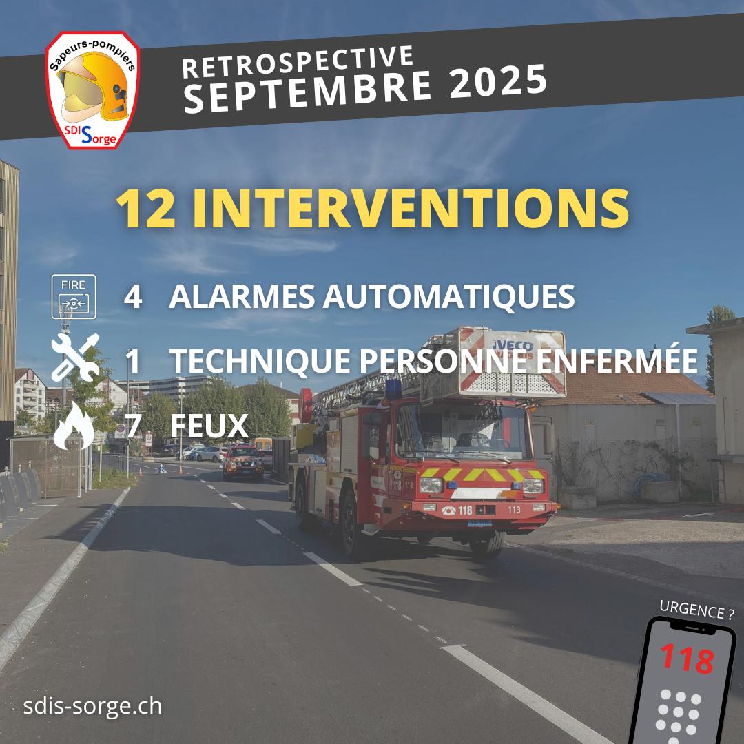 Le SDIS Sorge a été alarmé 12 fois au cours du mois de septembre 2025.